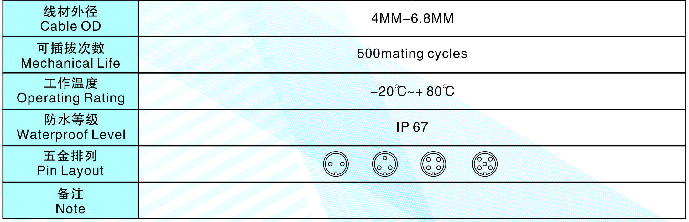 芯數(Contacts Number): 2 - 5芯