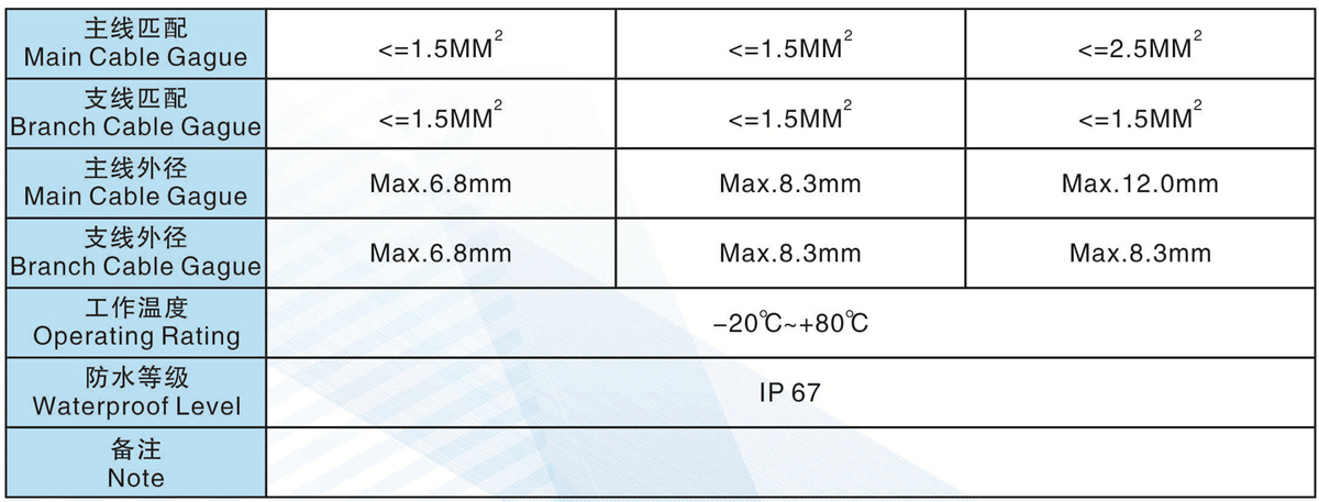 支線匹配(Branch Cable Gague):<=1.5MM2